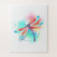 Quebra-cabeça libélula vermelha sobre fundo de aquarela