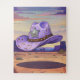 Add a touch of western charm to your celebration as a gift, party favor or party game with this scenic jig saw puzzle! This design features a light purple cowgirl hat floating in a picturesque desert scene-sweet, sassy, and full of rodeo-ready spirit. Whether you're throwing a cowgirl-themed birthday, baby shower, or country-chic bash, this soft and stylish western icon brings just the right amount of flair to your celebration.