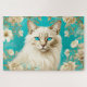 fundo turquesa antiquado de flores brancas e um belo ponto Lilac Lynx Ponto Siamese cat AI Art por minx267