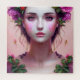 Arte IA retratando uma fada etérea bonito como uma dama com flores cor-de-rosa no cabelo.