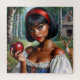 Quebra-cabeça apresenta trabalho de arte de pintura a óleo de uma linda mulher negra de pele castanha segurando uma maçã. Ela está vestindo batom vermelho, uma faixa vermelha no seu corte de cabelo, e um vestido de camponês em um cenário de floresta com um veado ao fundo. Hiperfeminina melanina cottagecore estética. O conto de fadas é arte de Dee Claire.