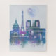 Quebra-cabeça Linha do Skyline de Paris - Azul Aquarela