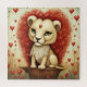 Um adorável leão e corações.