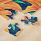 Quebra-cabeça num padrão de lírios/lírios de dia laranja num fundo verde-claro
