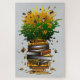 Esse design gráfico lúdico e vibrante apresenta uma pilha de livros amarelos arranjados em forma de abacaxi. Os livros são empilhados, mas o livro mais superficial está a rebentar com energia, liberando uma explosão de suco verde e amarelo que se espalha para fora. Pequenos livros estão saindo da explosão de suco, acrescentando um senso de movimento e diversão. Toda a composição mimetiza a aparência de um abacaxi, misturando o amor pela leitura com o encanto tropical dessa fruta icônica. É um design perfeito para amantes de livros com um talento criativo para o capricho!