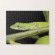 Esta é uma quebra-cabeça de quebra-cabeça de um lagarto de anole verde giro tocando em um galho de laranjeiras no meu jardim.