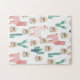 Quebra-cabeça de serra verde e lenha rosa-branca