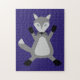 Este incrível quebra-cabeça de quebra-cabeça mostra uma imagem de arte digital de um lindo Lobo de Halloween. O lobo é uma cinza com olhos azuis fofos e uma cauda fofa. Ele tem patas pretas e seus braços largos, abertos, bonitinhos e assustadores ao mesmo tempo. Um design de Halloween divertido para todas as idades.