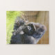 Um grande gorila preto senta-se ao sol perto de um povoado de grama verde alta. A relva mais curta fornece o primeiro plano perfeito, levando a sua pose refletida. Ele olha em sua direção, e você se pergunta o que ele está pensando. Se você ama gorilas então, peça o seu hoje!