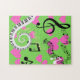 Um quebra-cabeça de quebra-cabeça com tema musical, o segundo de uma série. Ele apresenta uma variedade de símbolos musicais em um delicado fundo verde com corações cor-de-rosa e notas musicais em preto e branco.