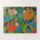 Três preguiças penduradas nas árvores. Há uma variedade de tamanhos.