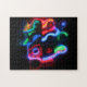 quebra-cabeça de serra de 11" x 14" com imagem de luzes de néon em blocos de vidro girando a preto. Veja toda a coleção Este e Aquele Quebra-cabeça na seção HOME.