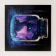 Nossa magia em uma série de quebra-cabeça Jar apresenta uma bela paisagem e criaturas em um vidro. Este mostra um dragão azul-escuro giro sentado numa caverna rodeada por estalagmites roxos e água ceruliana girando.