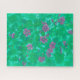 Quebra-cabeça de quebra-cabeça com pintura floral em tons verdes, flores florescentes de verão, mauve roxa roxa cercada por folhas verdes. Acrílico no papel, 2020 © Julia Khoroshikh www.juliakhoroshikh.art #floralart #botanicalart #mallow #wildflower #greenapothecary #contemporaryfloral #floral #uzzles #jigsawpuzzles #zazzlemade