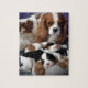 Mãe descuidado do Spaniel de rei Charles com seus bebês neste de uma foto amável de um rei bonito Charles Momma que nutre seus bebês.