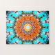 Quebra-cabeça Mandala Estrela-Dada forma azul e alaranjada