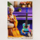Esta quebra-cabeça tem uma mulher mais velha com seus gatos, guitarra e fazer de piano.