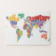 Um mapa de texto tipográfico do mundo. Cada país é representado por seu nome, que é dado forma ao ajustado na área geogràfica correta. Virtualmente todos os países são representados esperam para algumas das ilhas muito menores no Pacífico e caribe.