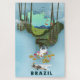 O Brasil mapeia o poster de viagens Ilustrado da paisagem da floresta amazônica e um pequeno avião leve.