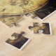 Um quebra-cabeça desafiador com um mapa antigo do mundo e uma bússola em tons ricos e quentes.