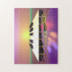 Quebra-cabeça de quebra-cabeça para amantes de música com minha imagem surreal de teclas de piano flutuando na água com um sol e tons rosa e roxos.