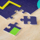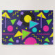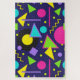 Este é um motim de formas e cores brilhantes sobre um fundo azul marinho.