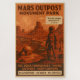 Embrace the Ultimate Frontier: Step back into the future with this stunning WPA-style travel poster puzzle. Designed to mimic the iconic Federal Art Project posters of the 1930s and 40s, this artwork invites you to explore the rugged, unforgiving beauty of Mars Outpost Monument Park. The Landscape: Iconic sandstone-style buttes and deep winding canyons stretch toward the horizon, under the glow of a large, pale Martian moon. The Details: An intrepid astronaut stands in the foreground overlooking a domed habitat outpost and a classic finned rocket ship, grounding the sci-fi concept in vintage "Golden Age" aesthetics. The Humor: Below the epic imagery, the puzzle features tongue-in-cheek travel warnings: "No Atmosphere • No Water • No Services," along with a glowing review from a visitor: "A truly unique destination!"