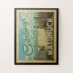 Esta design do Cartaz Vintage de Matunuck apresenta uma praia arenosa com uma bela água turquesa oceânica e acima do mar, um céu azul com nuvens brancas onduladas. No estilo viagens vintage.