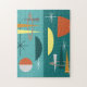 Uma arte de abstrato com inspiração retrógrada da turquesa de 1950 com muitas formas coloridas, geométricas e estereótipos sputnik.