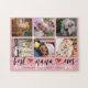 Quebra-cabeça de colagem de fotografias de tipografia moderna. Design apresenta um script de tipografia ''best nana ever'' & ''we love you'' em um fundo Cor-de-rosa metálico e 6 fotos de netos. Um presente de fotografia único para a vovó.