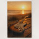 Uma guitarra repousa pela costa enquanto o pôr do sol pinta o horizonte em tons dourados quentes. A mistura perfeita de música e natureza, transmitindo calma, inspiração e a sensação de que cada acorde ressoa com a luz que desvanece da noite.