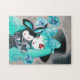 Menina gótico do kawaii doce com o cabelo de turquesa, vestindo um chapéu alto do estilo do Victorian, e abraçando seu coelho de coelho do preto do animal de estimação.