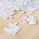 Adicione um toque especial à coleção de jogos da sua garotinha com este adorável quebra-cabeça de serra azul e rosa pastel. A quebra-cabeça tem um padrão de elefantes, cães, gatos, macacos, unicórnios, coalas, tartarugas, narvais e muito mais. Adicione o primeiro nome e monograma inicial da sua garotinha para um toque personalizado.