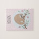 Este quebra-cabeça de crianças bonitinho e moderno apresenta um lindo, desenhado à mão, rabisco de preguiça-cama com flores e folhas. Este design cor-de-rosa encantador também representa um lugar para você adicionar o nome da sua garota. O dom perfeito para qualquer amante de preguiça!