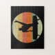 Equipe de Gymnastics Boys Sunset. Forte quebra-cabeça de ginasta macho apresentando uma cara em um cavalo de pommel em frente a uma legal imagem retrô do pôr do sol.