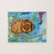 uma trabalho de arte decorativa de um mergulhador do mar profundo vestindo um antigo traje de mergulho observando o mundo submundo como um quebra-cabeça decorativo.
