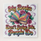 Uma design vibrante e colorida mostra um livro aberto, rosas, formas em crescente e estrelas. O texto em negrito diz, "Meus livros não me julgam, pessoas acreditam." Esse design exclusivo está disponível em uma grande variedade de produtos.