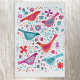 Pássaros aquosos modernos e contemporâneos e padrão de flores em verde-lacrimogêneo, rosa magenta e vermelho sobre fundo branco. Arte original de Nic Squirrell.