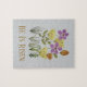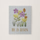 Ele Está Risen. Ressurreição Quebra-cabeça de Páscoa de domingo com um belo design floral moderno com cores púrpura e Páscoa amarela. Você pode alterar os estilos/cores de texto/fonte. Faz um presente excelente!
