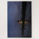 quebra-cabeça de pintura fotográfica com moinhos de vento iluminados históricos com reflexo na água do rio durante a Hora Azul no início da noite, em Kinderdijk, na Holanda.