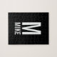 Design de monograma preto-e-branco moderno, apresentando um monograma personalizado e nome no estilo de fonte moderno bold sans serif.