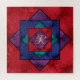 Quatro cores diferentes se complementam nesse design de colcha com um monograma amarelo no centro.