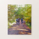 Uma aquarela de três homens pedalando nas colinas galesas.