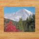 Um quebra-cabeça de quebra-cabeça desafiador que apresenta uma imagem cênica do Monte Rainier e cores rudimentares e ferozes do outono no parque nacional. Divertido para toda a família. NOTA: imagem otimizada para quebra-cabeça até 16 x 20 polegadas.