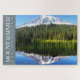 Celebrar a história e a beleza dos parques dos Estados Unidos com esta bela e desafiadora quebra-cabeça. Apresenta uma foto impressionante do Monte Rainier ascensão acima dos Lagos de Reflexão no Parque Nacional do Mt. Rainier, Washington.
