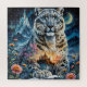 Leopardo-da-neve em flores silvestres num vale cercado por Montanhas um castelo e arte IA à luz da lua por minx267