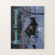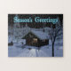 Uma noite escura na Sibéria - trazendo um pouco de madeira para o fogo, agulhas de coníferas são cobertas de geada. Os sapatos de neve perto da porta e o cachorro está com fome. A leitura de texto "Saudações da Estação" também aparece em azul e branco brilhantes. Moroz (м о р з) é a palavra russa para a geada.