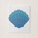 Um desenho de uma concha. Design mosaico em tons azuis.