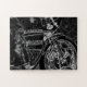 Motocicleta 1 - Detalhe da roda dianteira e do tanque de uma bicicleta de corrida em preto e branco. © Alan Harman Fotografia 2012. Todos os direitos reservados. www.alanharmanphotography.com 210518 jigsóvia quebra-cabeça