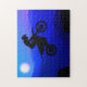 Esta quebra-cabeça de serra apresenta uma cena de uma bicicleta de terra silenciosa. É uma viagem noturna com lua de cheio. ^